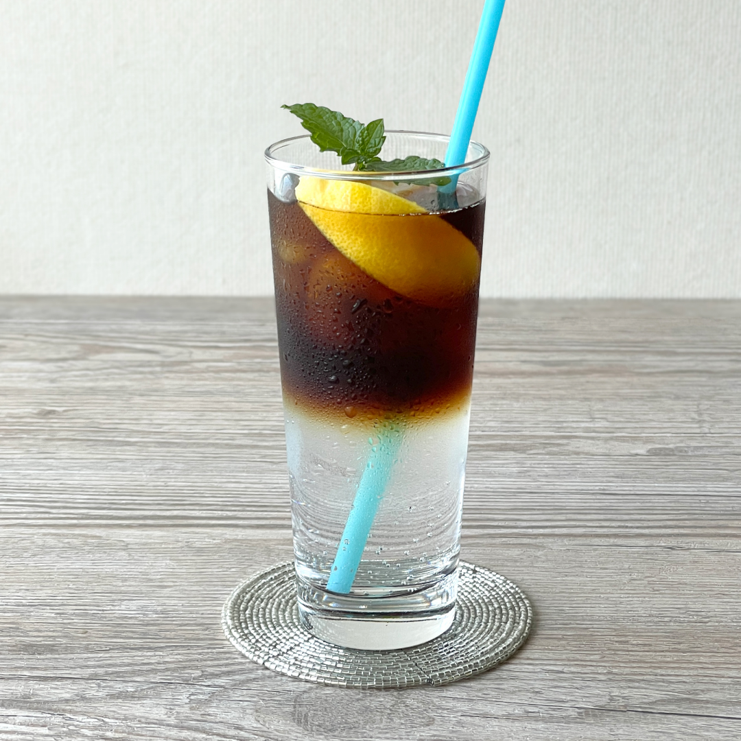 ※甘味のあるトニックウォーターを使って、カフェオレベースを後からゆっくりと注ぐと綺麗な2層のドリンクになります。